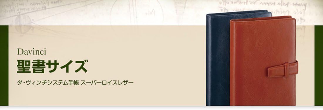 手帳サイズ...聖書サイズ カラー...ブラック 品番:DB3006B 聖書サイズ 本体サイズ:W130 × H190 × D23mm 本体重量:300g 素材:牛革(植物なめし) リング:内径15mm ペンホルダー:固定式。14mm径までのペン可能 セットリフィル内容: ・ガイドプロテクター × 1 ・パーソナルプロフィール × 1 ・ブックマーク × 1 ・スケジュール/マンスリー × 20 ・スケジュール/ウィークリー × 20 ・ノート × 20 ・チェックリスト × 10 ・カードホルダー × 1 ・ガイドプロテクター × 1 背広のポケットに入るサイズのダ・ヴィンチ システム手帳。 1996年誕生したダヴィンチ システム手帳シリーズ。今もな、お変わらない職人の技術により独特の風合いを表現する人気シリーズ。 ビジネスマンのニーズを考慮した機能を多数搭載。 約14mm径のペンまでが収納できる固定式ペンホルダー、カードや書類を収納できるケースを設けている。手帳の中身は、ガイドプロテクター、パーソナルプロフィール1枚、マンスリースケジュール20枚、ウィークリースケジュール20枚、ノート20枚、チェックリスト10枚、カードホルダー、ガイドプロテクター という充実の内容。 納得の素材・機能・価格を追求する「ダ・ヴィンチ」。 シンプルで機能的な手帳によって「新・価・値・想・像」を具体化するシリーズ「ダ・ヴィンチ」。納得の素材・機能・価格を追求し、ビジネスマンに愛されるシステム手帳を生み出している。究極のスリムサイズを目指したジャストリフィルサイズ、A5サイズ、聖書サイズ、ポケットサイズの商品を展開。 システム手帳「ダ・ヴィンチ」で知られる文房具メーカー。 株式会社レイメイ藤井は、紙・文具・事務機の総合商社として、システム手帳をはじめとする文房具のメーカーとして知的生産サポートしている。質感にこだわりクオリティー・デザイン・機能を追求したビジネス用品、個性的クリエイティブ空間の創造をサポートするホーム&オフィス用品、楽しさ・おもしろさ・トレンドを追求したスクール&キャンパス用品をバリエーション豊かな品揃えで展開。 B00I19MDEI 4902562432229