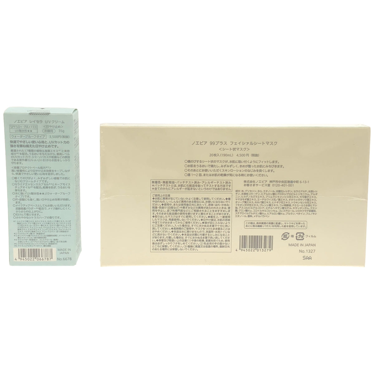 Z000 ノエビア 99プラス フェイシァルシートマスク 20枚入(190mL) & レイセラ UVクリーム 35g 2個セット