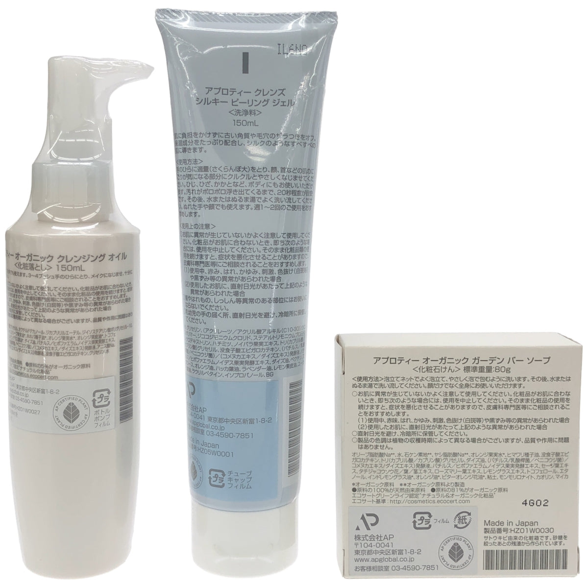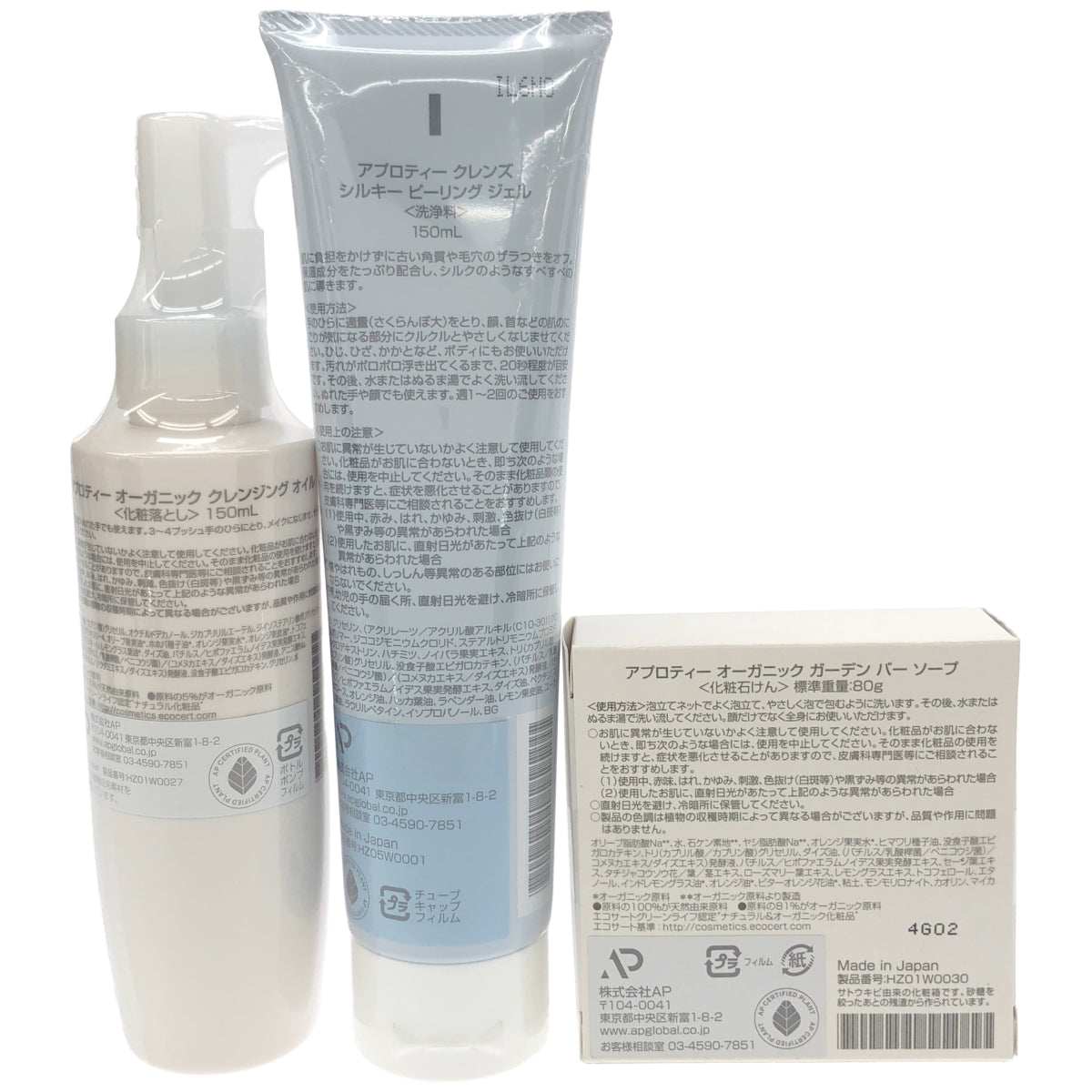 Z000 アプロティー オーガニック ガーデン バー ソープ & クレンジングオイル & クレンズ シルキー ピーリング ジェル 3個セット