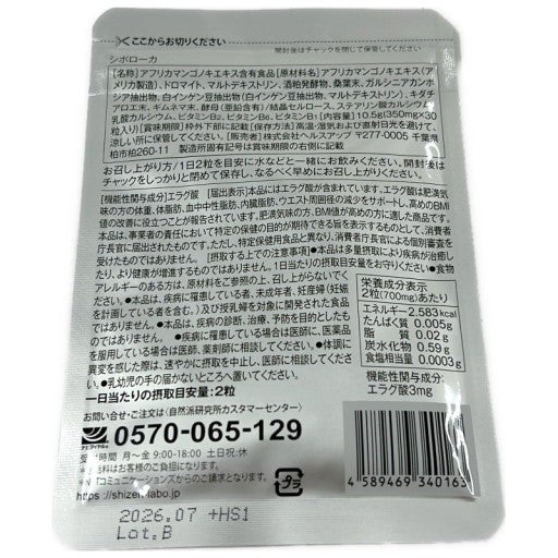 CA26 K シボローカ 30粒 2袋セット 自然派研究所 サプリメント エラグ酸 体脂肪 中性脂肪 内臓脂肪●賞味期限:2026/07~