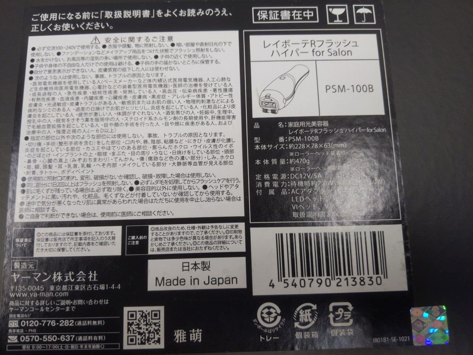 商品名 :YAMAN ヤーマン PSM-100B 脱毛器
